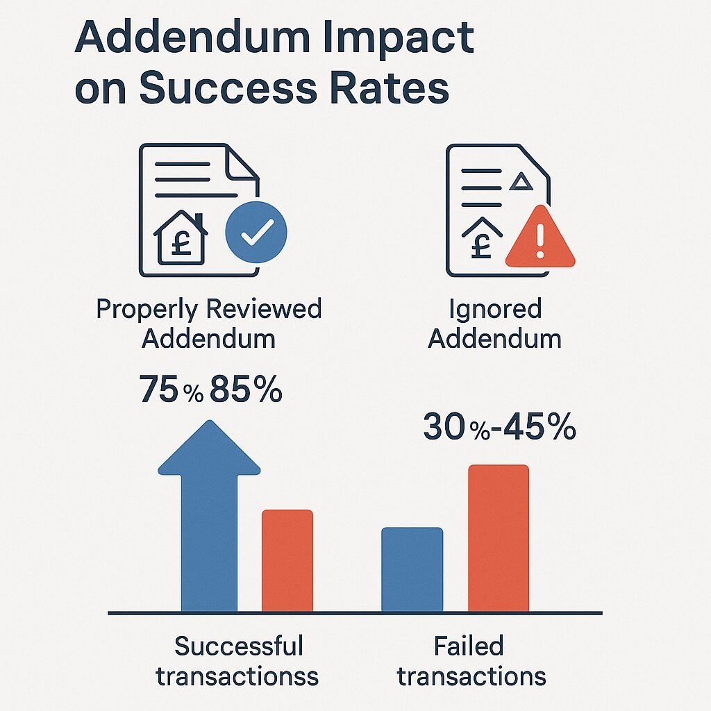 Auction addendum explained comprehensively reveals how these legally binding documents fundamentally impact 75.6% of UK property auctions, creating crucial last-minute changes that reduce success rates by nearly 10% and affect final prices by an average of -1.82%. Whether participating in traditional room auctions achieving 76.1% success rates or online formats at 73.9%, understanding addendum implications determines the difference between successful purchases and costly mistakes—particularly critical as the Digital Markets, Competition and Consumers Act 2024 enforces unprecedented disclosure requirements through April 2026.