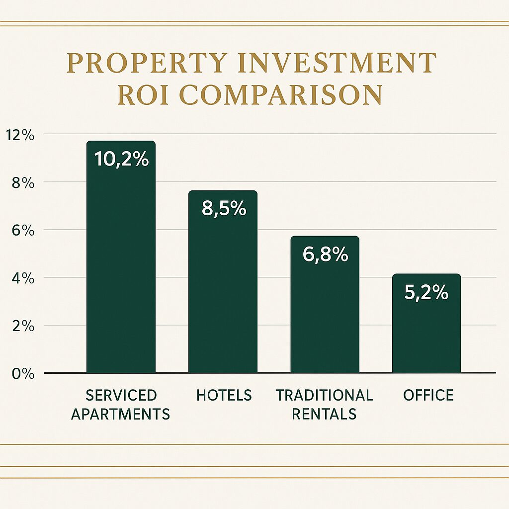 Serviced Apartments – Market Leaders Achieving 10.2% average ROI with 82.5% occupancy rates, serviced apartments dominate the hospitality investment landscape. The global market reaches $124.16 billion in 2025, projected to grow at 12.6% CAGR through 2032. UK properties particularly excel, with London occupancy at 81% outperforming traditional hotels. These assets benefit from operational efficiency with 60% gross profit margins and lower staffing requirements, appealing to investors seeking resilient, high-yield opportunities.