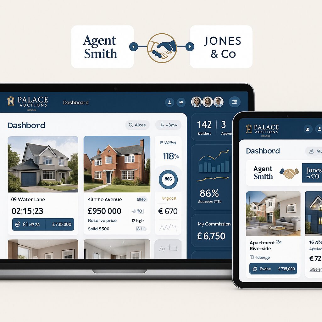 Join Palace Auctions London’s joint agent partnership programme and access the UK’s most rewarding property auction collaboration model. With no sellers commission and a guaranteed 50/50 split of the net buyers premium (minimum £4,000), our partners earned an average of £6,308 per agent in 2024 across 6,500+ successful instructions.