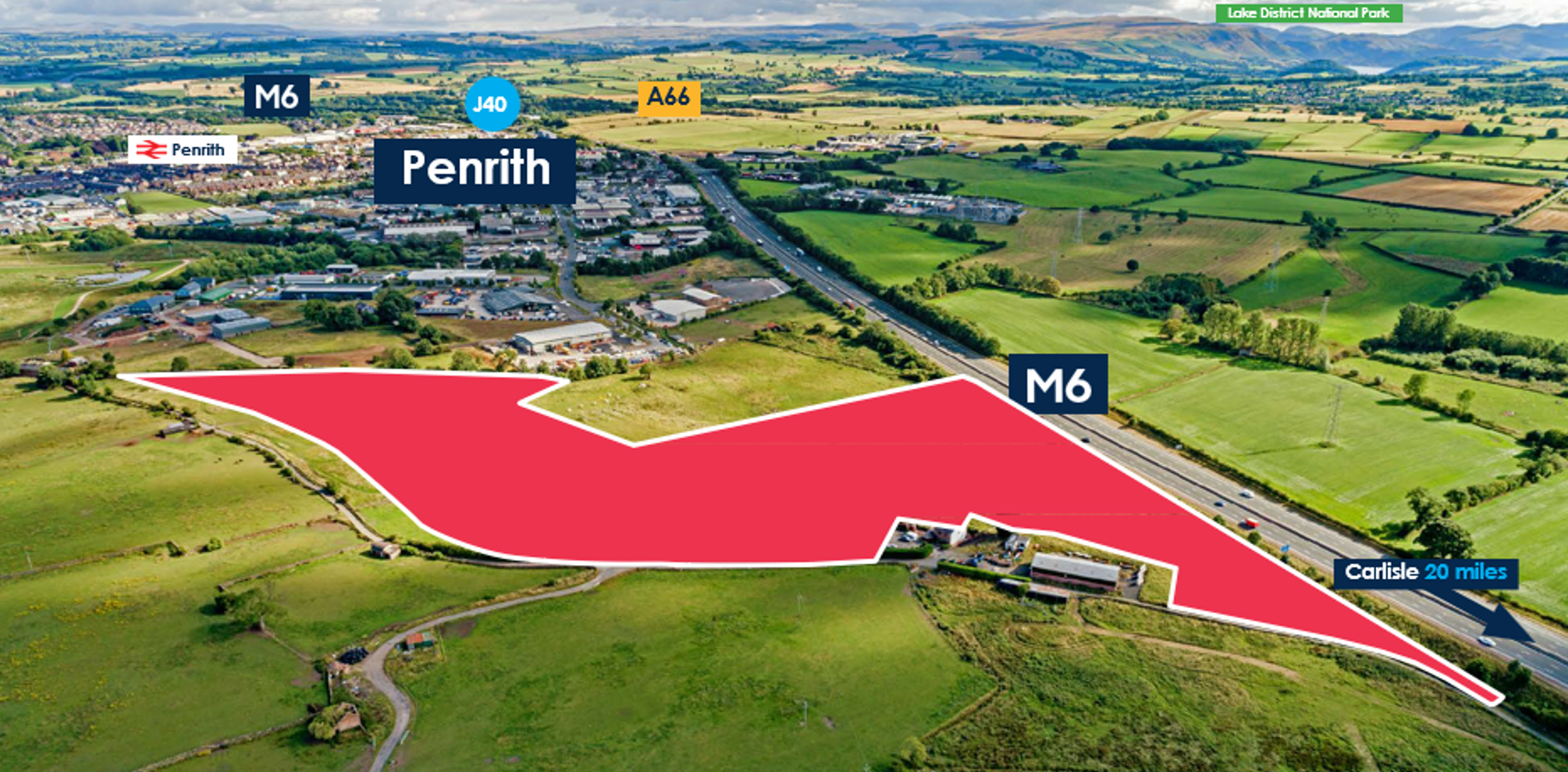 conveniently situated just off Cowper Road on the north-western outskirts of Penrith, Cumbria. This prime location is adjacent to junction 41 of the M6 motorway, providing excellent connectivity between Birmingham and Glasgow. Engage Park is already a popular choice for a variety of businesses, including car showrooms, logistics, and storage companies. Notable national occupiers such as Howdens Joinery, Rickerby, Plumb Centre, and AW Jenkinson have already established their presence on the site. The development of Engage Park has commenced, and we are now offering the remaining land for sale. This land comes with full planning consent for the further development of commercial investment units. The units on offer range from 5,000 sq ft up to 80,000 sq ft, each featuring a minimum eaves height of 6m, ample car parking and loading facilities, dock level loading on larger buildings, and electrically operated roller shutter doors. Offices and WCs are included subject to occupier requirements. All units will be connected to all mains services, with specific requirements available upon request. The units will upon development be available to lease on terms to be agreed depending on unit size. Upon completion of the scheme, Energy Performance Certificates (EPCs) will be carried out, with an anticipated rating of A. The development is supported by the Cumbria Local Enterprise Partnership, Cumbria County Council, and Eden District Council, all of which are keen to facilitate investment and job creation on the site. The guide price for the remaining development land is £250,000 per acre, with a total of 19 acres available with planning consent in place. This presents a unique opportunity for investors looking to expand their commercial development portfolio in a prime location. For further information, please contact. Palace Auctions and Joint agents Palace Auctions. Edward Swindells Tel: 07971 033276 Email Edward@palaceauctions.com Tom Barrett Tel: 02071013647 Email Tom@palaceauctions.com   We look forward to welcoming you to Engage Park, the perfect place for your business to grow and thrive.