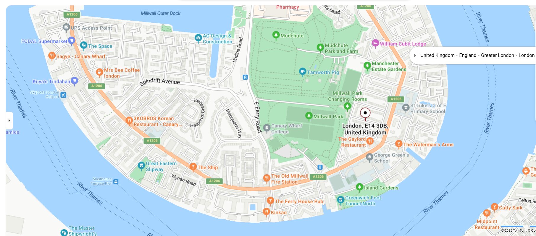 | DLR Station | Island Gardens – 9 min walk |